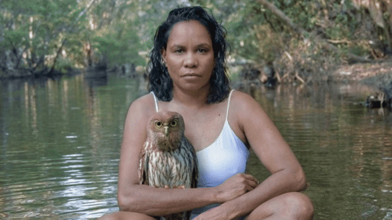 For Hobson, the photo captures a morning on her Country, a story about the way she lives. “It was one of those rare moments. That day I was at the river with my family, and we saw the owl on the ground. I think it had fallen from the tree, it looked a bit disoriented, so I sat with the owl quietly while it regained its bearings and then it flew off again.