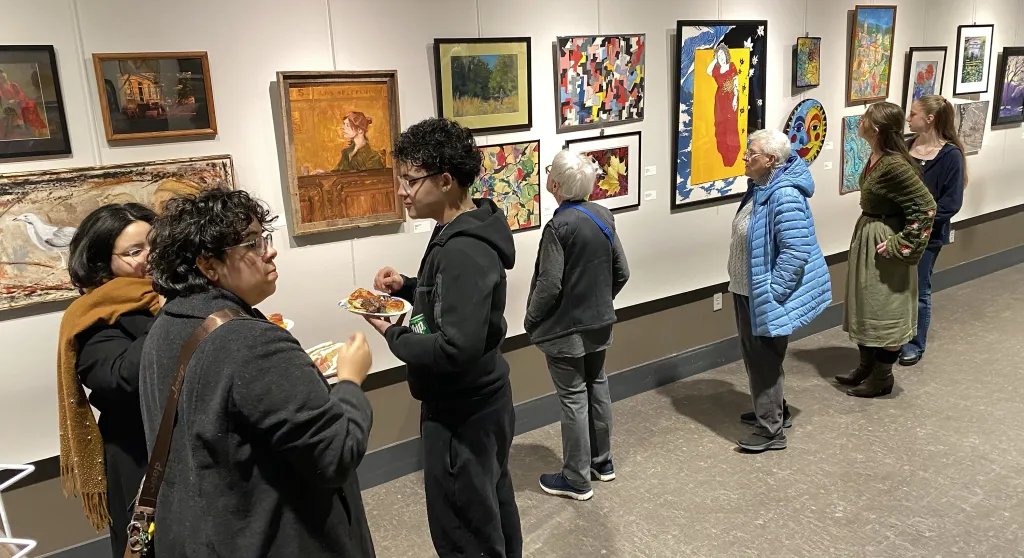 People look at art work during the annual Hazleton Art League Members’ Art Exhibition” at the Hazleton Art League on Friday Jan 30, 2026. The show features more than 125 pieces of work by Hazleton Art League members The show will run Friday Jan 30 2026 through Sunday Feb. 22 2026.(John Haeger / Staff Photographer)