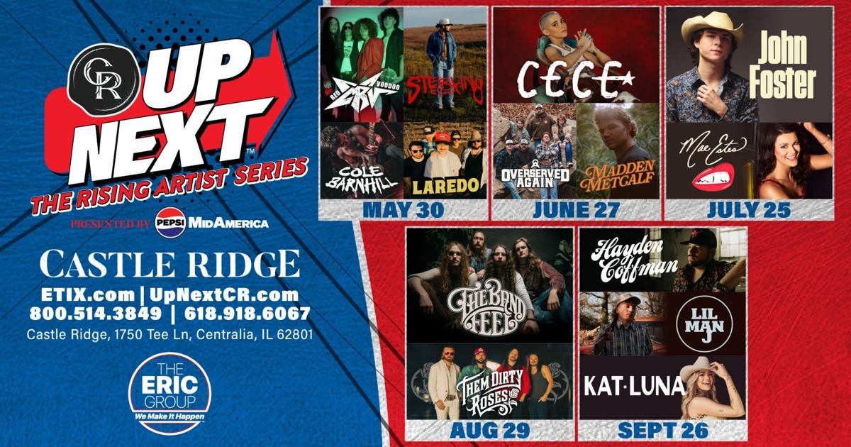 CENTRALIA, Ill. (WSIL) — Castle Ridge is launching a new concert series designed to spotlight emerging artists across multiple genres. The venue announced UP NEXT: The Rising Artist Series, presented by Pepsi MidAmerica, will run the last Saturday of each month from May through September.