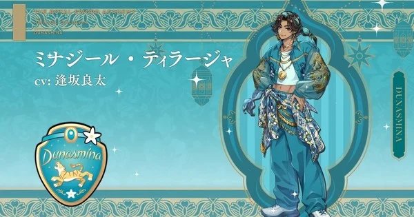 Ryōta Ōsaka as Minajael Tealrajah, a third-year student in the dormitory Dunasmina (“twisted from” Aladdin and Jasmine) and the first-born prince of a desert kingdom. In the video, he muses about the carefree life outside the palace and wanting to live more freely.