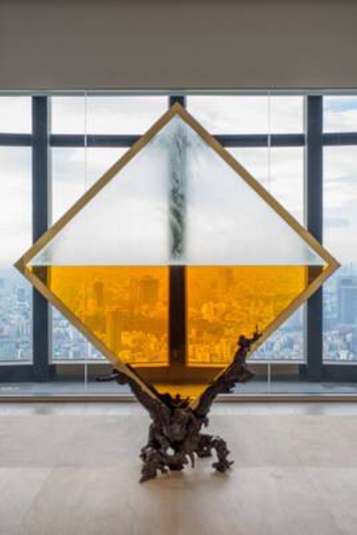 A massive sculpture featuring brandy poured between two panes of glass. View Tokyo from this unique perspective.