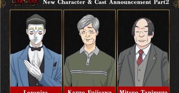 Anime distributor REMOW revealed three new cast members for the television anime of Shinobu Kaitani Liar Game manga on Thursday.