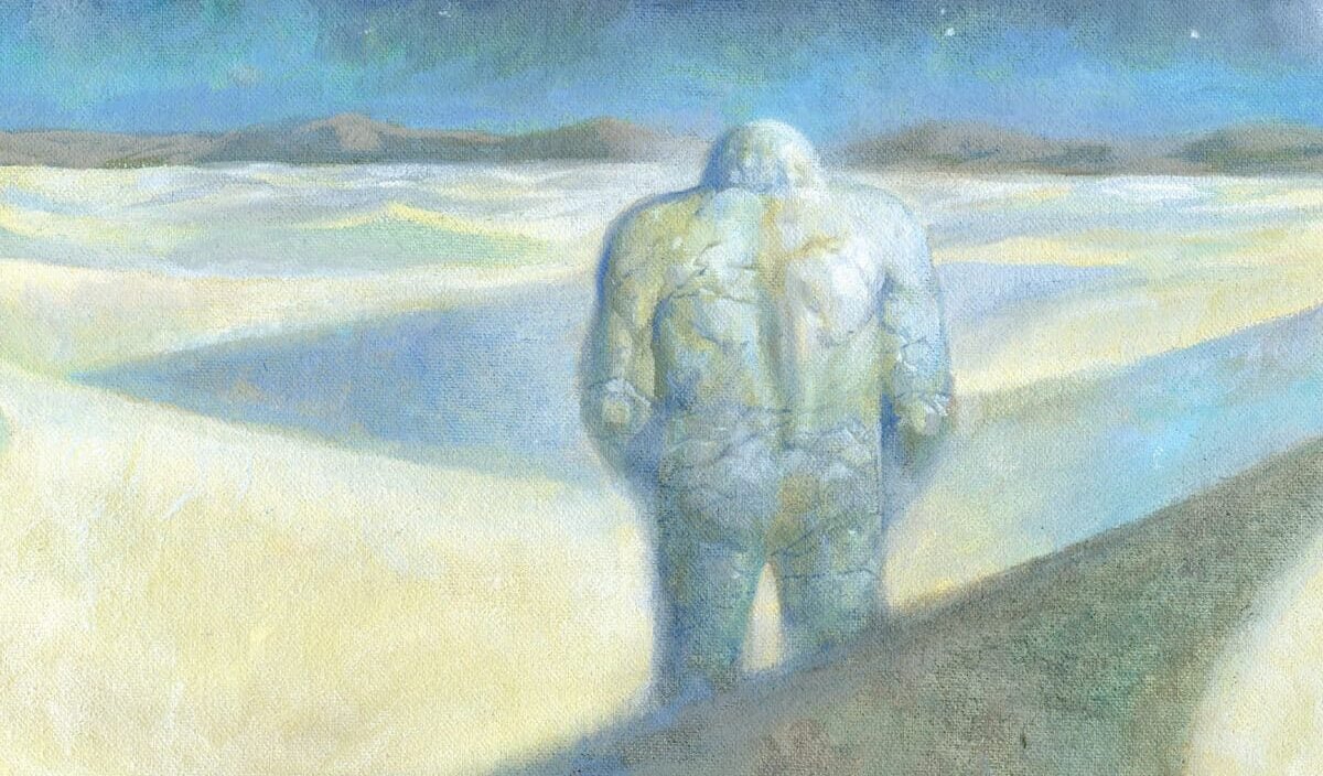 “Concrete has entered the desert and not come back. Larry and Maureen are frantic. Reports come that he is wandering the nearby arid mountains, covered with blood, attacking people. Concrete, lightning-struck, confused, roams a frightening world he can’t understand. Roars tear across the sky. A strange globe rises. His body is sheathed in stone. He thinks he is being hunted. People are a threat.