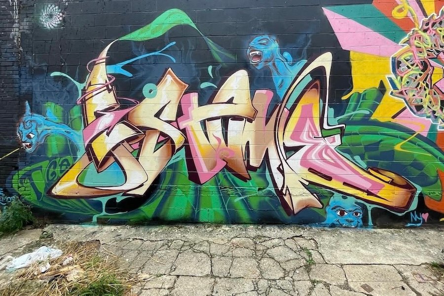 I remember being in LOVE Park and people telling me you can’t write without a crew. I didn’t have a crew, and I wasn’t put down with any crews. At this point, I’ve turned down crews. I’ve left crews, you know, we’ve had to remove people from our crew, and all of that. Our reason for a crew — I mean, we loved graffiti art first and foremost. That’s where we’ve bonded. It’s the love for letters and the composition of pieces and letters and tags. And I think that’s not everybody. Some people get in because they’ve had charmed lives but want to get messier through the messiness of graffiti. Graffiti is their gateway into street life. But Philly is also the home to probably the most writers who really use graffiti as a creative outlet to get out of street life. You see people who are into all types of crazy things to make money and other things, but could be just walking bus routes and tagging is a way for them to find a little mindful creative space.