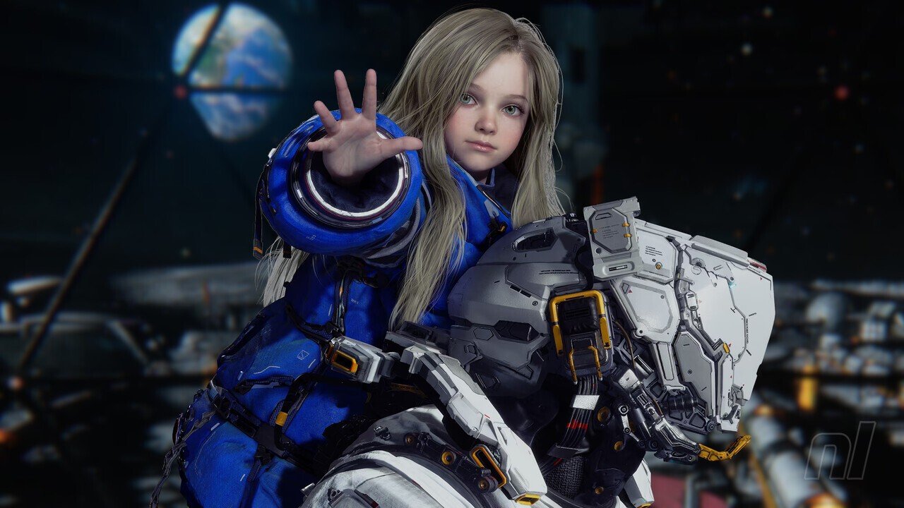 Pragmata’s Lunar Colony is a bright, vibrant setting that recalls the future-tech maximalism of genre classics like PlatinumGame’s Vanquish. The lavish art style will be familiar to fans of director Yonghee Cho’s work, whose credits include hyper-stylised Metal Gear Rising: Revengeance, NieR Automata, and Resident Evil 3.