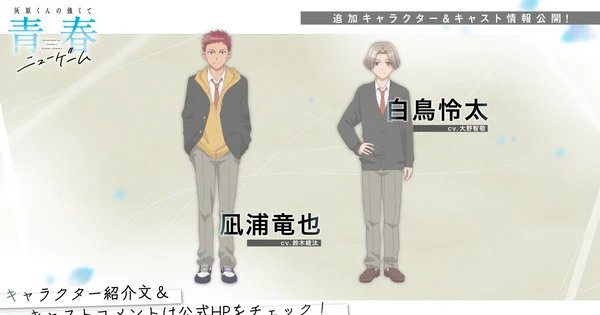 The website for the television anime of Kazuki Amamiya’s Haibara’s Teenage New Game+ (Haibara-kun no Tsuyokute Seishun New Game) light novel series revealed two more cast members on Thursday.