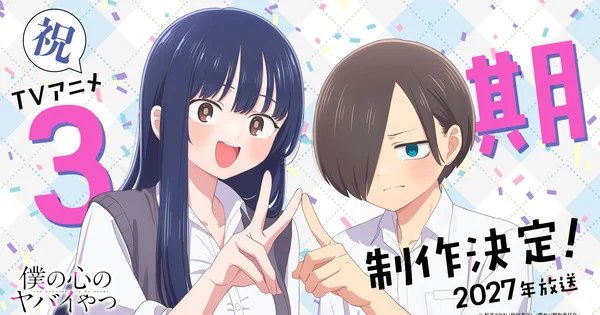 TV Asahi announced at an event on Saturday that the television anime of Norio Sakurai’s The Dangers in My Heart (Boku no Kokoro no Yabai Yatsu) manga will get a third season that will debut in 2027. Character designer Masato Katsumata shared a visual for the new season. TV Asahi did not confirm any other staff members for the new season.