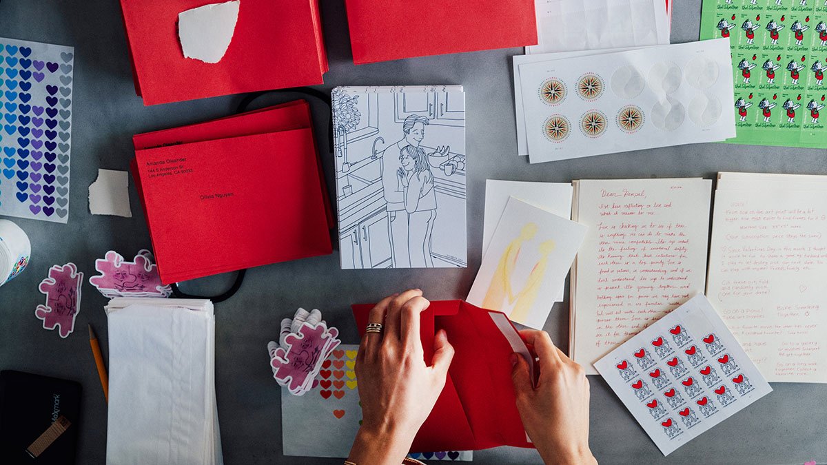 Created by artist and illustrator Amanda Oleander, known for her emotionally honest work about love, relationships, and everyday intimacy, the project grew out of something deeply personal. What began as a quiet habit of collecting handwritten cards and sending thoughtful letters has evolved into a global exchange of art and connection.