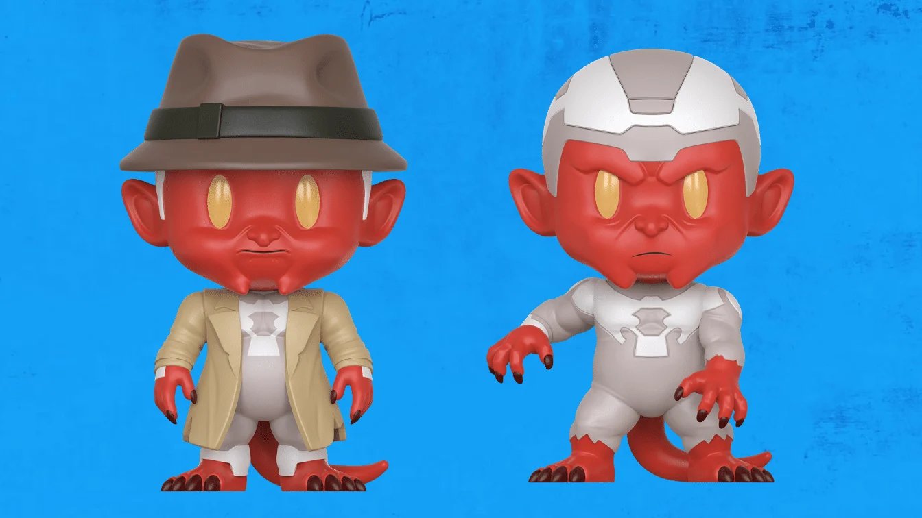 The limited hero edition (7,777 units) PIX! figure features Damien Darkblood with his deep red skin, yellow eyes, and signature outfit. Moreover, The 1 in-6 chase rare variant features a battle-ready variant of Darkblood with his trench coat removed and his helmet on.