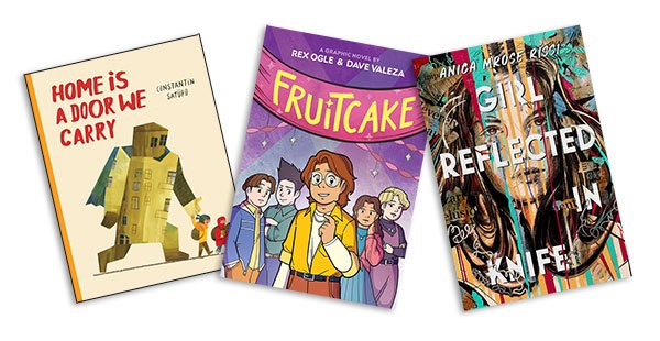 Home Is a Door We Carry by Constantin Satüpo. Yonder, $19.95; ISBN 978-1-6320-6421-9. Two long-journeying children vividly resurrect left-behind places in this yearningly imagined picture book.